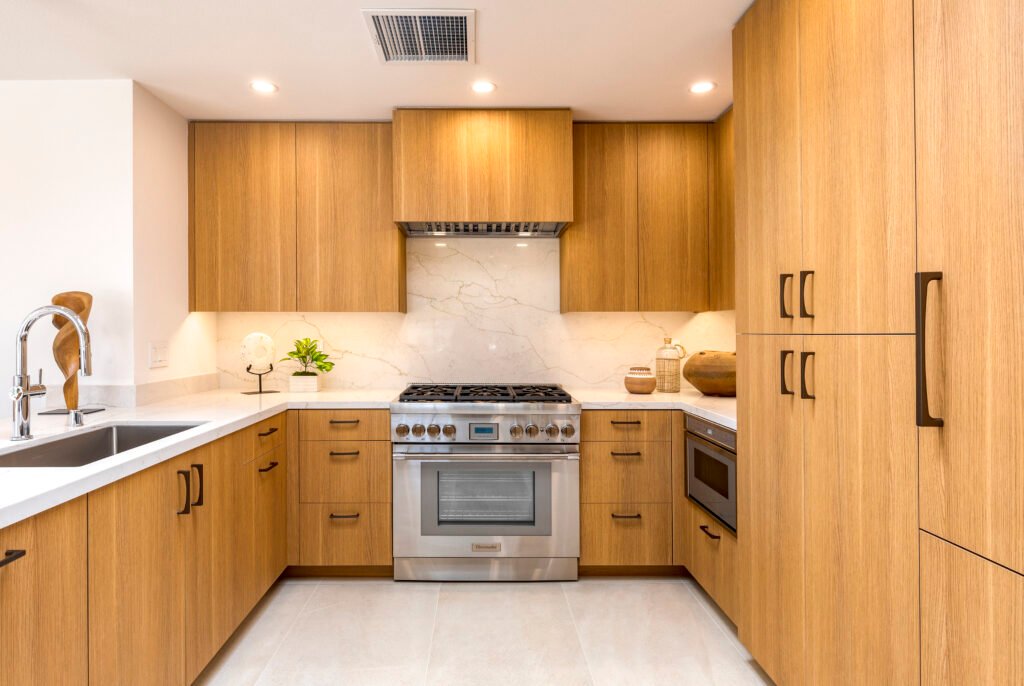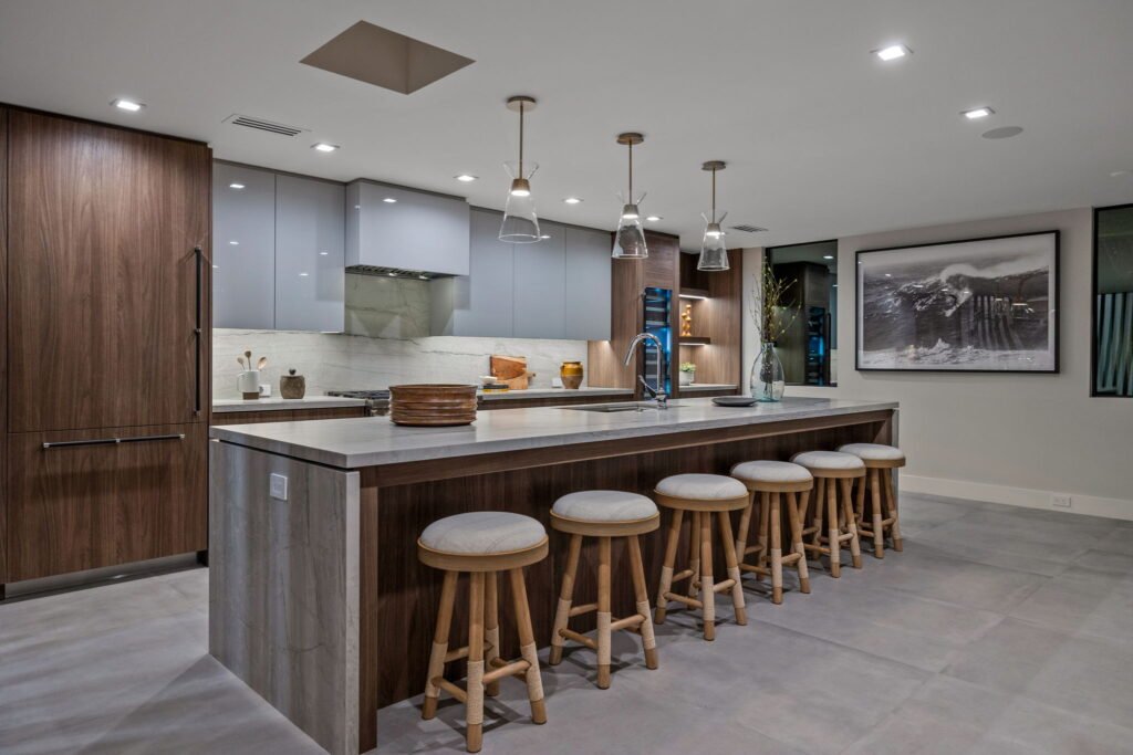 Designing with a mono-material approach allows the eye to glide uninterrupted, making even modestly sized kitchens feel larger and more open.