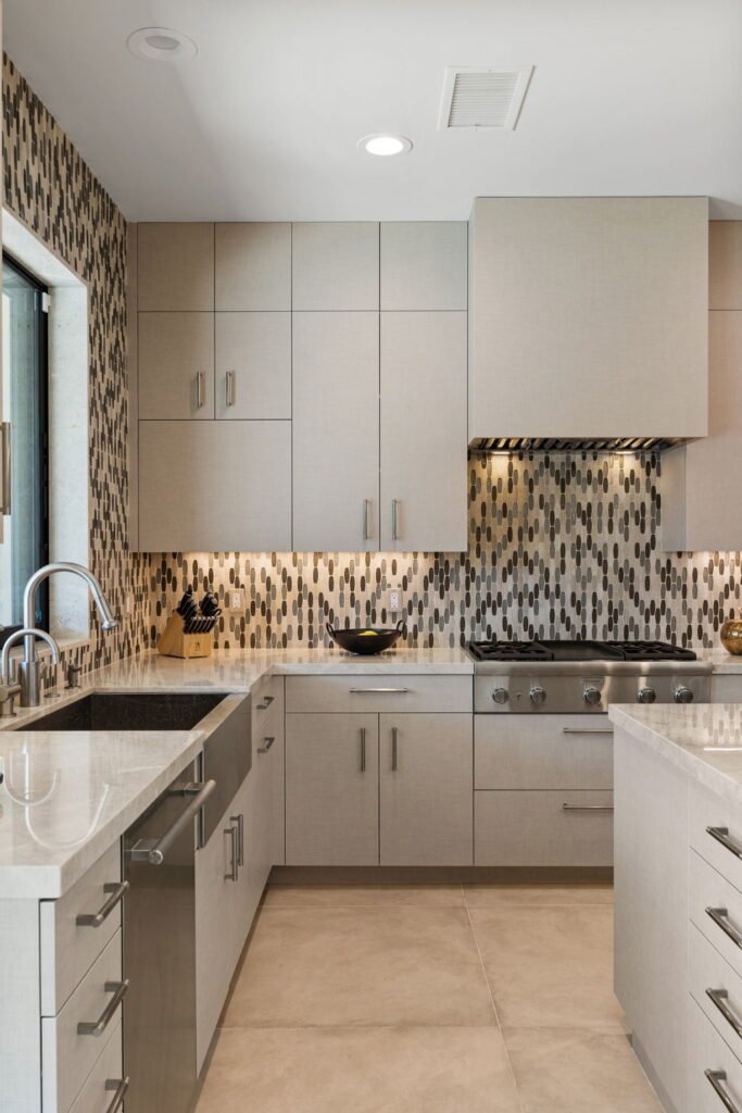 Create a kitchen that feels like a single, harmonious extension of the home with a calm and luxurious feel with subtle dimensionality.